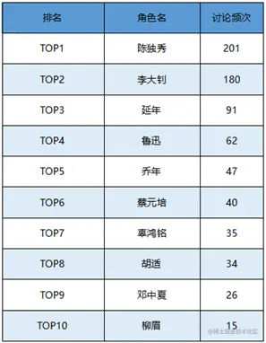 延年和乔年两位的成长经历也赚足了讨论热度,稳居讨论热度TOP5,蔡元培、辜鸿铭、胡适、邓中夏等具有影响力的文化学者和革命党人同样有着超高的讨论度;