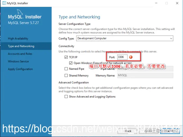 6,设置MySQL服务的端口号,默认是3306.若非必要,不要更改