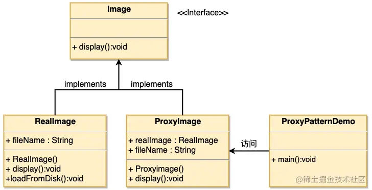 将创建一个 Image 接口和实现了 Image 接口的实体类。ProxyImage 是一个代理类,减少 RealImage 对象加载的内存占用。