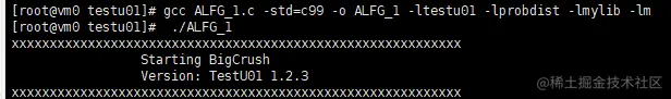 [root@random0 testu01]# gcc mytest.c -o mytest -ltestu01 -lprobdist -lmylib -lm