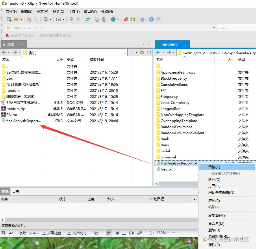 也可将测试结果通过Xftp传送到主机上查看。