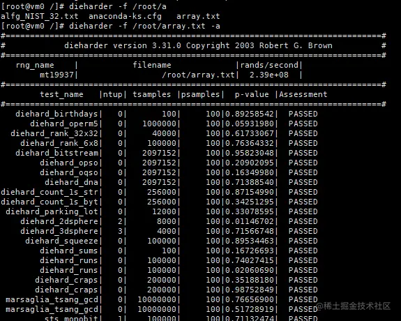 在任意路径下 [root@random0 ~]# dieharder -f /root/array.txt -a