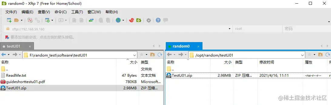 则在Xftp上如下图: