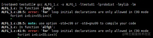参考文献:使用MinGW进行TestU01测试、error: 'for' loop initial declarations are only allowed in C99 mode