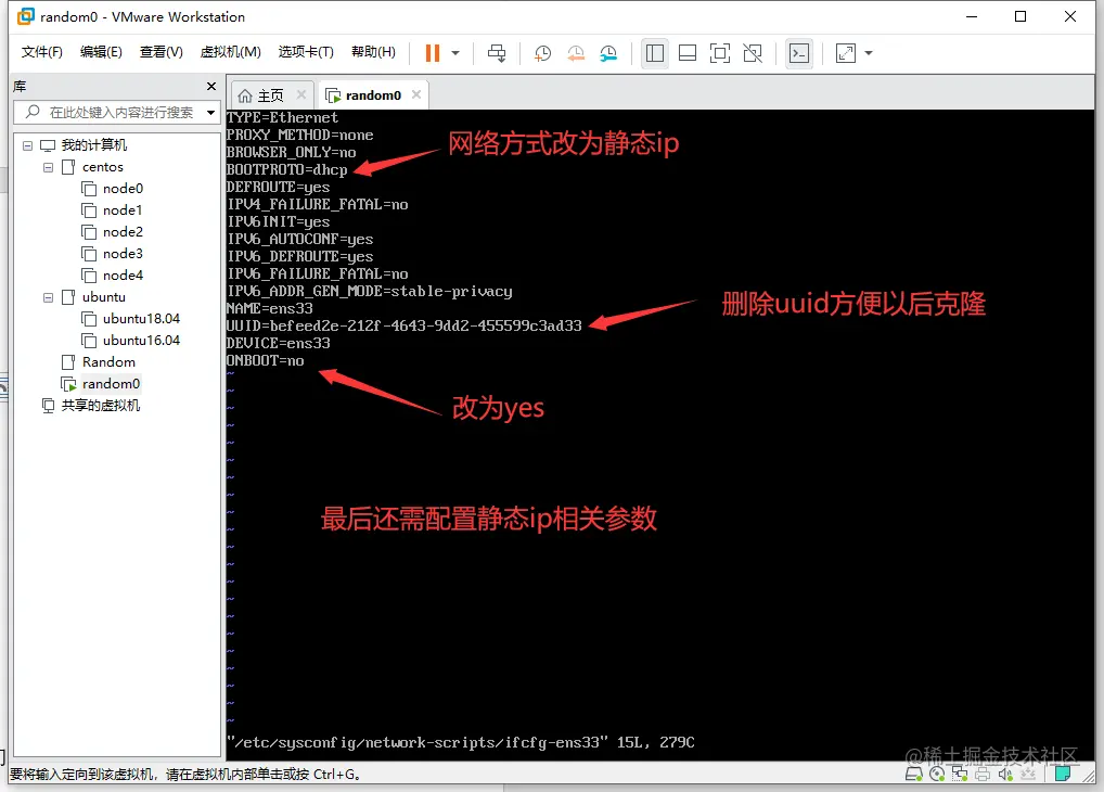 b. 输入 vi /etc/sysconfig/network-scripts/ ifcfg-ens33