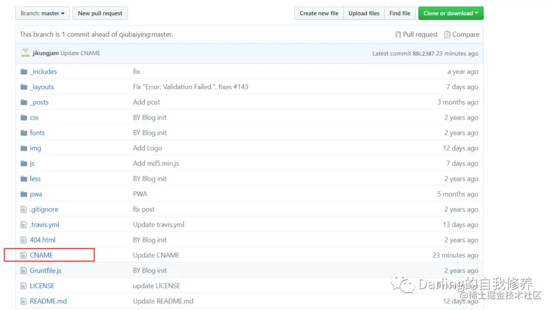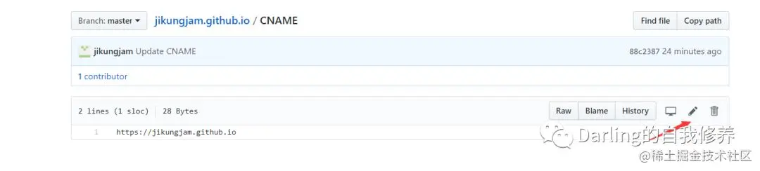 3.打开CNAME(全大写)文件,点击修改,修改成自己的域名