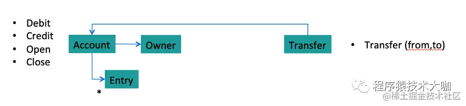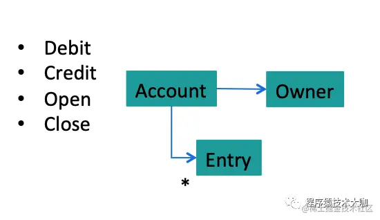 为了理解这个定义,首先要了解其中的两个术语。聚合(Aggregate )是领域驱动设计的概念,我们已经看了它的一个具体例子。聚合是一组相关的实体,它们的生命周期被捆绑在一起,可以把它们作为一个单独的单元来对待。典型的例子是 Order/LineItem,我们例子里的 Account/Entry 只是它的一个变体。