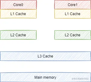 从L1到L3,缓存越来越大,命中率也越来越高,但是读取缓存的延迟也会变高。