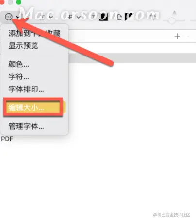 2.在“字体”窗口中,点按操作弹出式菜单 ,选取“编辑大小”