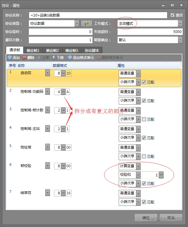 根据协议帧格式,为了方便控制和显示,把协议项的数据按照功能进行拆分。