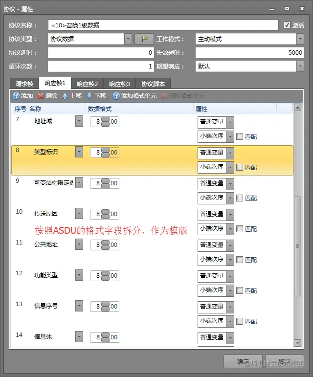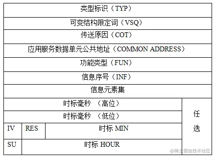 5)变长帧中的ASDU为应用服务数据单元,详见标准。