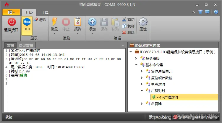 利用格西调试精灵软件的协议激励的功能,把DL/T667-1999通信规约按照树形结构分类组织,使得管理上更加有条理,查找也更加方便。