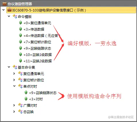 首先,根据DL/T667-1999通信协议的控制功能码,建立命令模版协议集,作为基本规约模版使用。