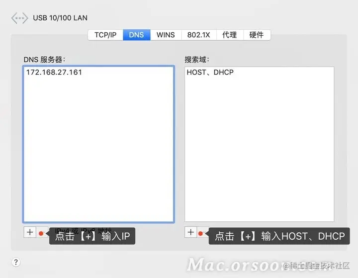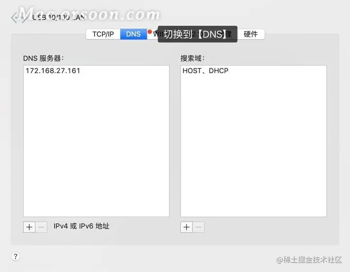在左边的【DNS服务器】栏目添加DNS服务器IP地址,可添加多个