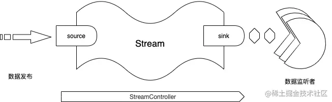 在这套流程里,观察者的 订阅 与被观察者的 事件发布 等一系列操作都直接在 Stream 或者说是框架内部完成的。