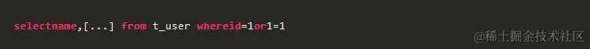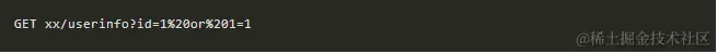 其中请求参数id转义后就是1 or 1=1,如果后端不做安全过滤直接提交数据库查询,SQL语句就变成了: