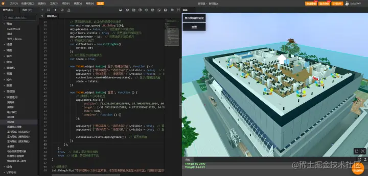 建筑楼宇都是实体,室内都是被遮挡的,对于建筑设计、楼宇管理和设备维护造成一定的困难。如果想了解房屋内部的复杂构造情形,这时候可以利用剖切面进行几何切割,室内的构造情况露出。ThingJS剖切盒功能,能够直接在数字孪生可视化场景中呈现剖切效果。