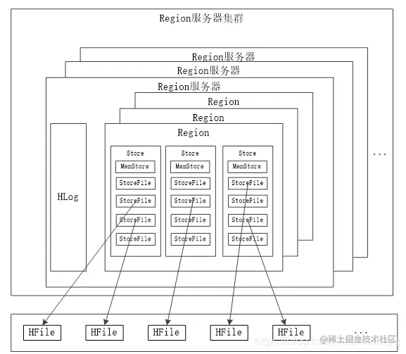 3、许多个Region服务器