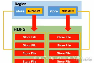 内存缓存,达到一定缓存大小或者时间节点触发一次 flush,文件系统中生成新的 HFile,每次 Flush 的最小单位是 Region。每个 Column family 维护一个 MemStore。