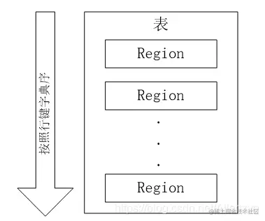 Hbase表的分片,HBase 表会根据 RowKey 值被切分成不同的 region 存储在 RegionServer中,在一个 RegionServer 中可以有多个不同的 region。同一个行键的 Region 不会被拆分到多个 Region 服务器上。 一个HBase表被划分成多个Region,开始只有一个Region,后台不断分裂。