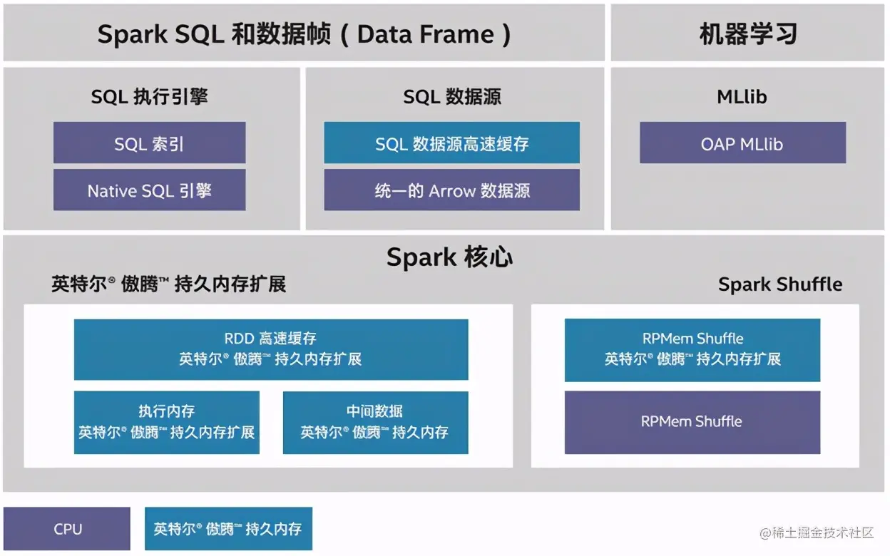- **RDD 高速缓存、RPMem Shuffle 等功能:**通过借助持久内存的大容量、高性能等特点来避免存储溢出(包括 RDD 高速缓存、溢出、中间数据),提高 Spark 性能。
