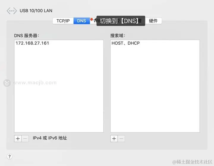 在左边的【DNS服务器】栏目添加DNS服务器IP地址,可添加多个