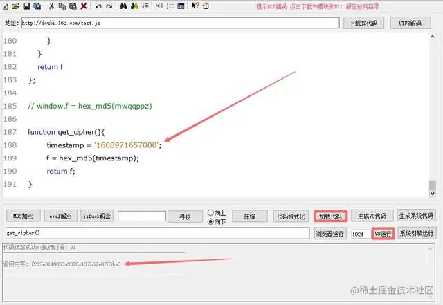 运行代码,可以看到加密后的时间戳与链接中的密文一模一样