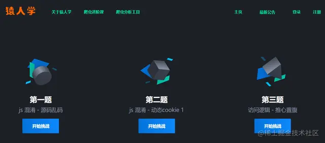 很早之前在吾爱破解论坛上看见了【猿人学】Web端爬虫攻防大赛,当时进入他们官网的时候,比赛已经结束了。看着那些题目还挺有意思的,但由于各种原因一直没有机会去做那些题目。最近比较闲,就去把猿人学官网打开看了一下,尝试着完成了第一道题目---JS混淆[源码乱码]