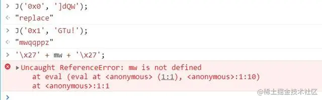 接着,我们依次运行J('0x1', 'GTu!'),'x27' + mw + 'x27',可以得到下列结果