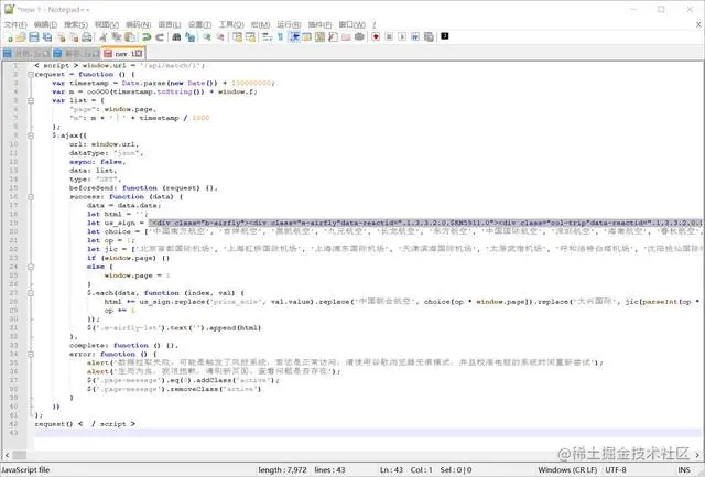 我们将整个script标签复制下来,到notepad++里面打开