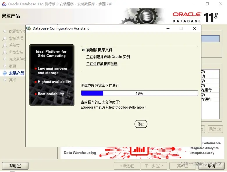 在安装完成后周,会开始创建 Oracle 实例,如图1-1-13所示: