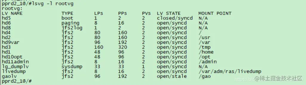 lsvg -l rootvg