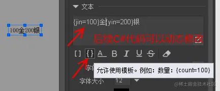 例如:需要显示“我的钱:100金200银”,当金额发生变化的时候使用模板功能不需要将无关汉字重新赋值,只需要修改文字即可。下面的图示就可以用aTextField.SetVar("jin", "500").SetVar("yin", "500").FlushVars(); 修改为500金500银