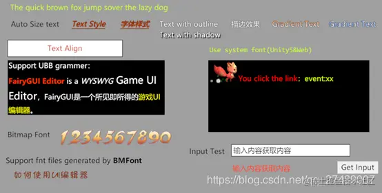 富文本可就厉害了,除了普通文本的功能,还支持点击事件,超链接和图文混排,更支持HTML语法,这能玩的花样就多了去了。你见过的游戏文本效果,基本都能搞出来。
