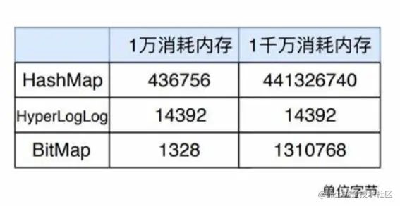 Hyperloglog 占用的内存空间是固定的,2^16 次方,只需要占用 12 KB 内存,从内存的角度来技术选型,Hyperloglog 是首选哦