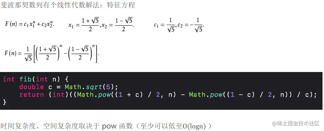 根据递推式 T n= T n − 1+ T(n − 2) + O(1),可得知时间复杂度:O(2n)