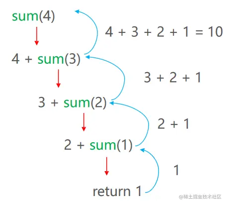 A 懒得数,于是问前一排的人 B【你坐在哪一排?】,只要把 B 的答案加一,就是 A 的排数。