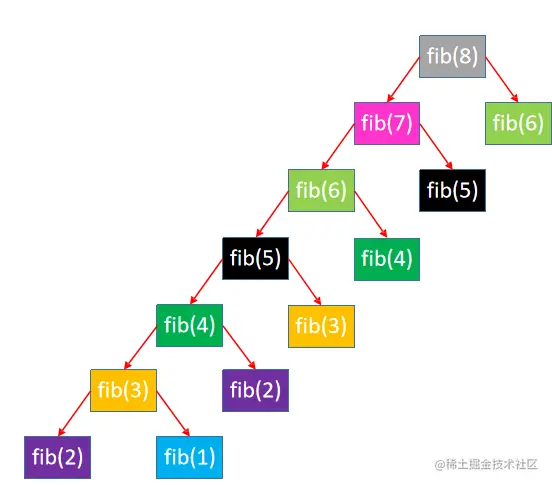 我们也看到了,在函数调用的过程中,出现了很多的重复调用和计算,我们利用数组来储存已经计算好的斐波那契数。
