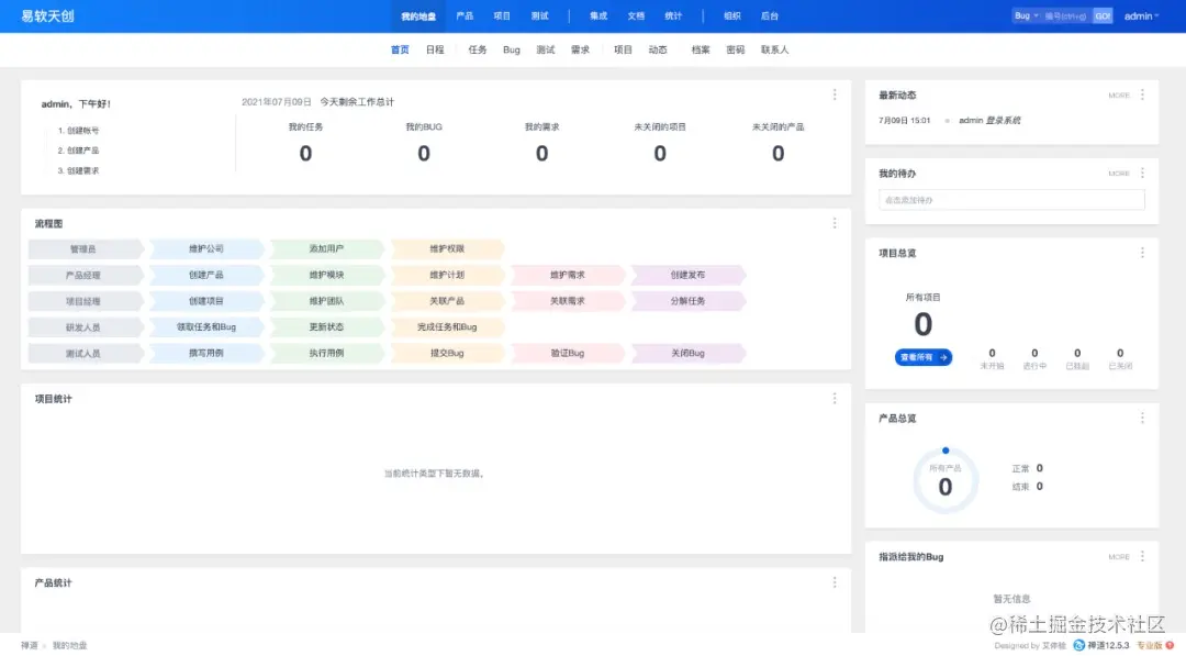 保存后就进入了项目的管理控制台首页,首页中可以查看当前系统中的所有项目概览