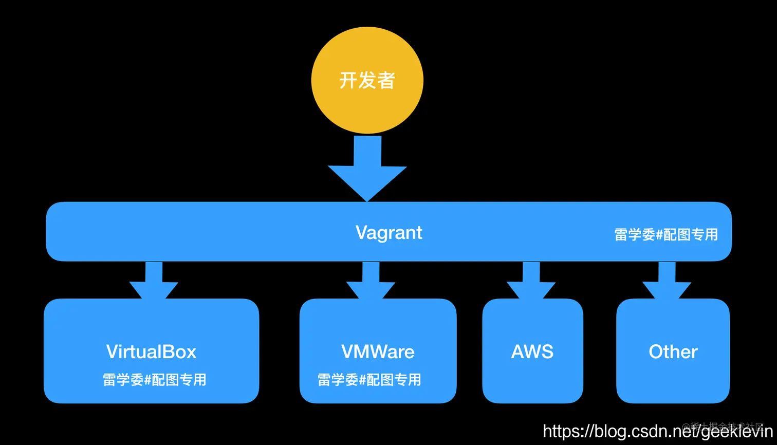 如下图,Vagrant凌驾在其他虚拟机之上(当前也能操纵AWS亚马逊云)