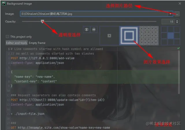打开PyCharm,连续按下两次 Shift 键,在输入框输入 Set Background Image (有使用汉化插件的直接搜索 “设置背景图像” )