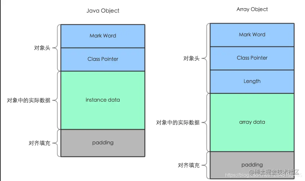 内部结构:对象头、实例数据、对齐填充(8的倍数)