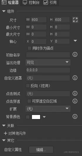- 同时作为锚点 勾选这个选项后,元件的原点位置将设置为轴心所在的位置。默认情况下,每个元件的(0,0)都是在左上角;勾选了轴心同时作为锚点后,则元件的(0,0)在轴心的位置。Unity中默认是中心为锚点,这是左上角,保持默认即可。