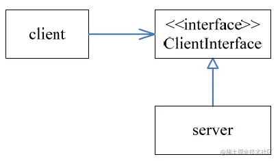 在新的设计中,添加了ClientInterface接口,此接口是一个拥有抽象成员函数的抽象类。Client类使用这个抽象类。如果我们希望client对象使用不同的server,只需要从clientinterface类派生一个新类,client无需任何修改
