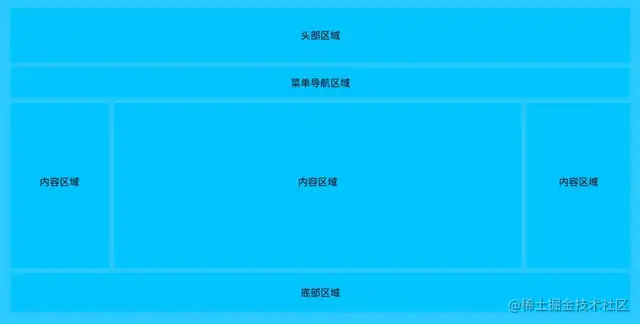 网页布局有很多种方式,一般分为以下几个部分:头部区域、菜单导航区域、内容区域、底部区域。