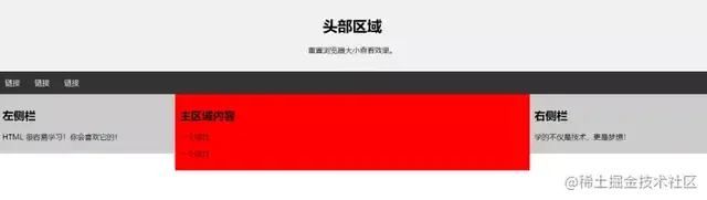 不相等的列一般是在中间部分设置内容区域,这块也是最大最主要的,左右两次侧可以作为一些导航等相关内容,这三列加起来的宽度是 100%。