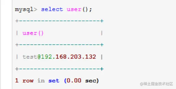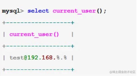 也就是,最后在User表中匹配到了Host字段为192.168.%.%、User字段为test的那一行,以test@192.168..%.%的用户身份登录了MySQL数据库。