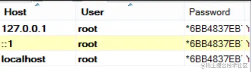 在MySQL5.7之前,User表中的口令字段为Password,从MySQL5.7开始,口令字段变成了authentication_string。
