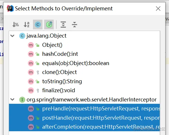 看下上面重新的三个方法中,只有preHandle有返回值,是个布尔类型:false 表示拦截,true 表示放行。