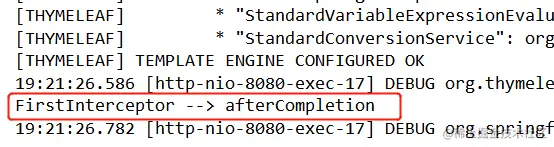 在非常多的 Thymeleaf 渲染之后,最后一个 afterCompletion 也执行了。